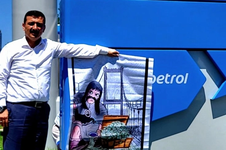 Türkoğlu, benzin istasyonundan açtığı pankartla iktidara seslendi.