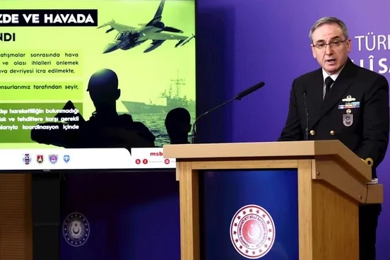 Tuğamiral Zeki Aktürk, Türkiye’nin hava sahasının korunması kapsamında muharip uçaklarla devriye uçuşları yapıldığını, Doğu Akdeniz’de deniz ve hava unsurlarıyla seyir, keşif ve gözetleme faaliyetlerinin sürdüğünü belirtirken, İran hudut hattında herhangi bir olağan dışı hareketliliğin bulunmadığı, muhtemel risk ve tehditlere karşı gerekli tedbirlerin koordineli şekilde alındığı kaydedildi.