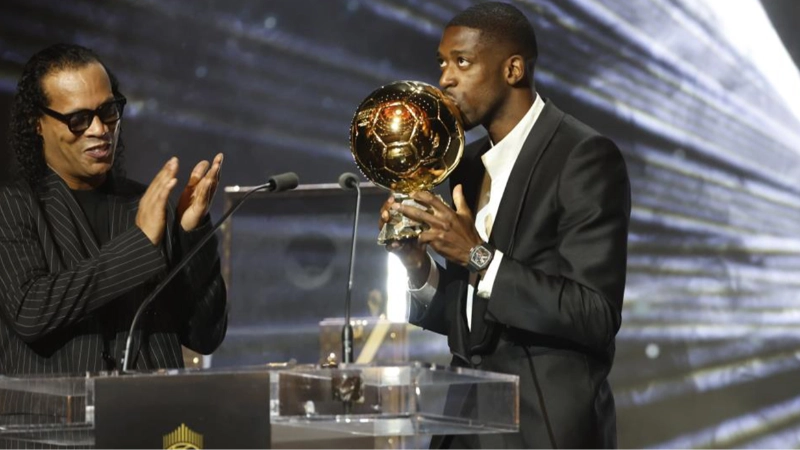 Futbol dünyasının en prestijli ödüllerinden Ballon d'Or bu gece sahibini buldu. Paris Saint-Germain forması giyen Dembele rakiplerini geçerek ödülü kazanan isim oldu. 28 yaşındaki futbolcu, 2024-2025 sezonunda UEFA Şampiyonlar Ligi şampiyonluğunun yanı sıra Fransa'da da kupalara damga vuran takımının en önemli pay sahiplerinden biriydi. Gecede Ballon d'Or ödülünü Brezilyalı eski futbolcu ve 2005 yılı Ballon d'Or sahibi Ronaldinho takdim etti. Ödülünü aldıktan sonra konuşma yapan Dembele, Ronaldinho'nun bir futbol efsanesi olduğunu ve kariyeri boyunca onu örnek aldığını ifade ederek sözlerine başladı. Dembele, "Paris Saint-Germain'e teşekkür etmek istiyorum. Bütün takım inanılmaz bir aileydi. İlk andan itibaren çok özeldi. Benimle çok özel ilişki kurdu. Luis Enrique benimle özel olarak ilgilendi. Harika bir sezonu geride bıraktık. Bu kupaları beraber mücadele ederek aldık. Belki bireysel bir ödül ama kolektif bir çalışma sonunda ben buraya geldim" ifadelerini kullandı.