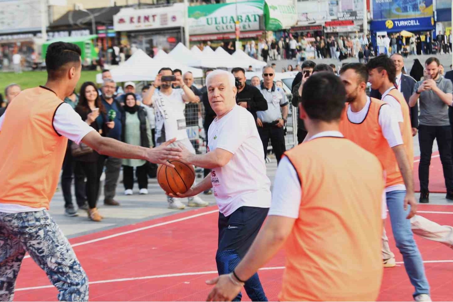 Osmangazi Belediye Başkanı Erkan Aydın’ın ev sahipliğinde gerçekleştirilen sokak basketbolu turnuvasında, Bursa Büyükşehir Belediye Başkanı Mustafa Bozbey, Nilüfer Belediye Başkanı Şadi Özdemir, Gemlik Belediye Başkanı Şükrü Deviren, CHP Bursa İl Başkanı Nihat Yeşiltaş, CHP Osmangazi İlçe Başkanı Cengiz Çelikten, Osmangazi Belediye Başkanları Mücahit Yıldızhan ve Fatih Vardar’dan oluşan başkanlar takımı, gençlerle iki maç yaptı. İlk karşılaşmayı 7-2’lik skorla kazanan başkanlar takımı, ikinci karşılaşmadan da 5-2’lik üstünlükle ayrıldı. Her iki karşılaşmada da galibiyet sayısı Osmangazi Belediye Başkanı Erkan Aydın’dan geldi. Basketboldaki hünerlerini ortaya koyan belediye başkanlarının attığı her basket, izleyicilerden büyük alkış aldı. Her iki karşılaşmanın kazananı başkanlar takımı olsa da asıl kazanan Atatürk gençliği ve Bursa oldu.