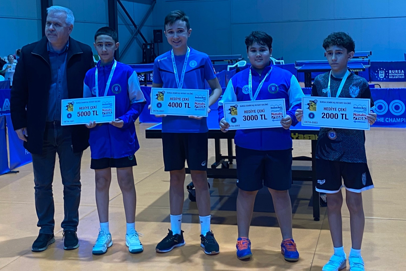 Bursa Büyükşehir Belediyespor Kulübü sporcuları başarılarına yenilerini eklemeye devam ediyor. 27-28 Ocak tarihleri arasında düzenlenen Minikler-Küçükler Ferdi Masa Tenisi Turnuvası'nda Bursa Büyükşehir Belediyespor Kulübü sporcuları 2 altın, 2 gümüş ve 3 bronz olmak üzere 7 madalya kazandı. Bursa Büyükşehir Belediyesi Gençlik ve Spor Hizmetleri Dairesi Başkanlığı, Bursa Büyükşehir Belediyespor ve Demirtaş Rotary Kulübü tarafından Acemler BUSKİ Spor Tesisleri’nde gerçekleştirilen organizasyonda Bursa Büyükşehir Belediyespor'dan Berra Eylül Erbaş küçük kızlarda altın madalya kazanırken, Tarık Yasin Şimşek küçük erkeklerde birincilik kürsüsünde yer aldı. Miray İmamoğlu'nun küçük kızlarda, Çınar Sakın'ın ise küçük erkeklerde gümüş madalya kazandığı turnuvada Bursa Büyükşehir Belediyesporlu diğer sporcular Zeynep Çalışkan ve Zeynep İrem Gandaş minik kızlar, Yusuf Kerem Mukul ise küçük erkeklerde üçüncü olmayı başardı.