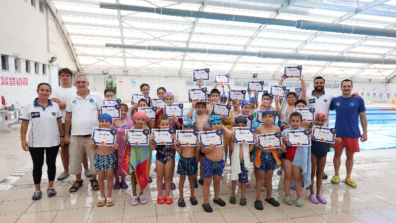 Çocukların yaz tatilinde hem spor yapma hem de eğlenme fırsatı bulduğu Yaz Spor Okulları kapsamında yüzme eğitimlerini tamamlayan minikler sertifikalarını aldı. Haftanın 4 günü olmak üzere 2 hafta eğitim verilen yüzme çalışmalarında çocuklar, Bursa Büyükşehir Belediyesi’nin Fethiye, Mihraplı, Kestel ve Gürsu Yüzme Havuzları’nda sporla buluşma imkanı buldu. Yüzme kurslarında 6-13 yaş aralığındaki çocuklar eğitim alırken, minik kulaçlar dönem sonunda sertifikalarına kavuşmanın mutluluğunu yaşadı.