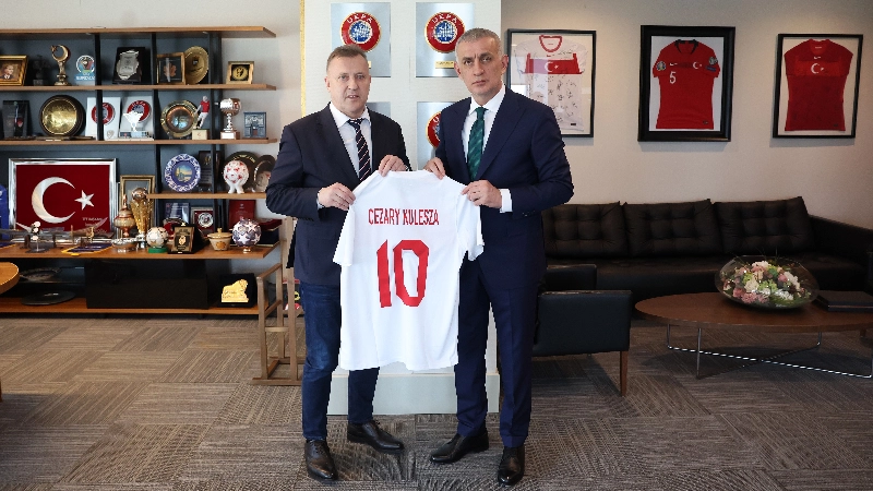Polonya Futbol Federasyonu Başkanı Cezary Kulesza, Türkiye Futbol Federasyonu Başkanı İbrahim Ethem Hacıosmanoğlu'na ziyarette bulundu. TFF Riva Hasan Doğan Milli Takımlar Kamp ve Eğitim Tesisleri'nde gerçekleşen görüşmede TFF Genel Sekreteri Abdullah Ayaz, Polonya Futbol Federasyonu Genel Sekreteri Lukasz Wachowski ve TFF Başdanışmanı Yusuf Yerkel de yer aldı.
