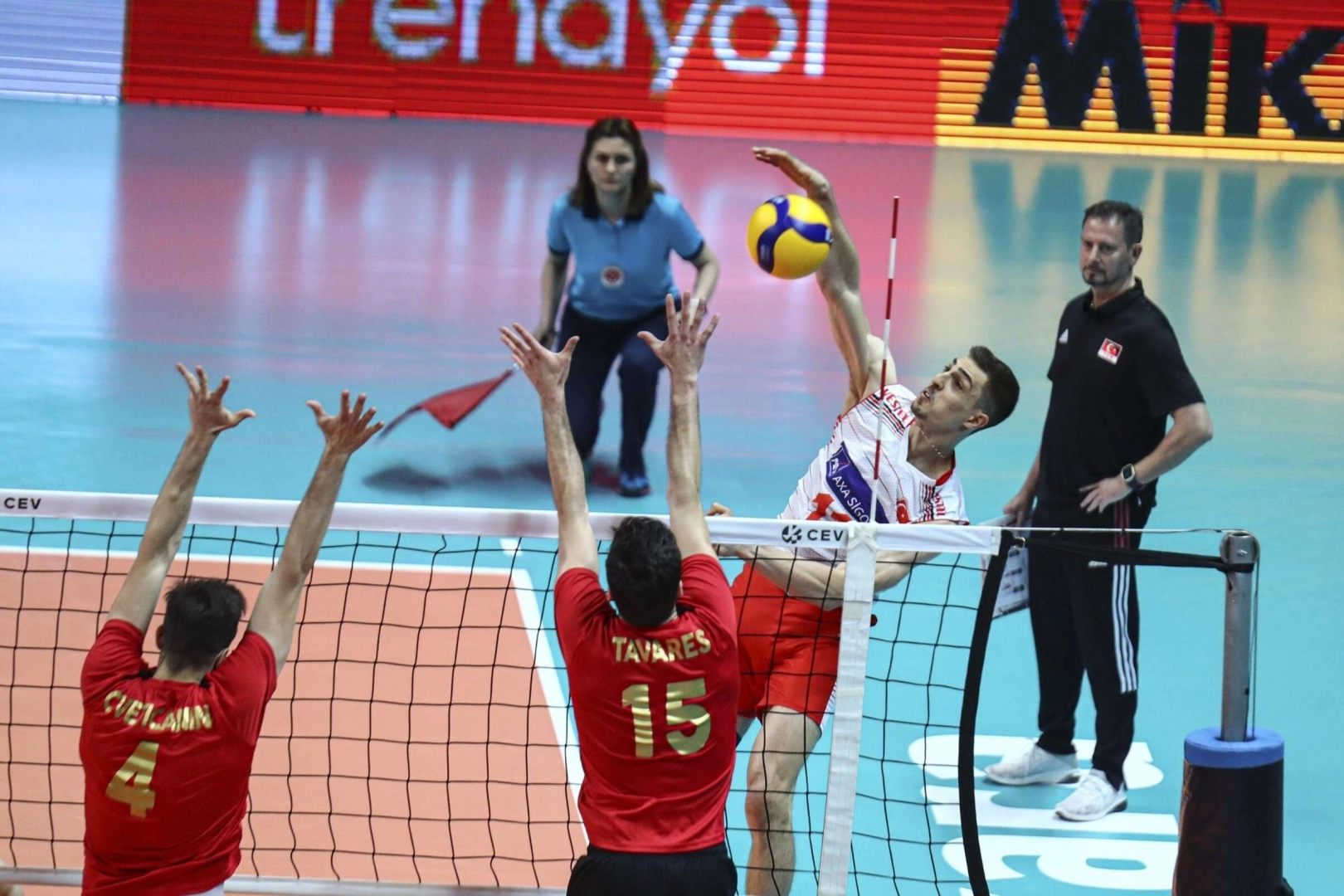 Milliler, gruptaki altıncı ve son karşılaşmasında cumartesi günü saat 17.00’de Ankara TVF Başkent Voleybol Salonu’nda Danimarka’yı konuk edecek. Salon: TVF Başkent Hakemler: Vasileios Vasileiadis (Yunanistan), Ramazan Çevik (Türkiye) Türkiye: Mert Matic, Adis, Efe, Faik Samet, Arslan, Yiğit, Volkan (L), Berkay (L) (Burutay, Mirza, Bedirhan) Portekiz: Cveticanin, Tavares Rodrigues, Ferreira, Sinfronio, Pinto, Martins, Casas (L) (Neves, B.Cunho) Setler: 23-25, 25-20, 25-21, 25-20 Süre: 121 dakika (28,28,31,34)