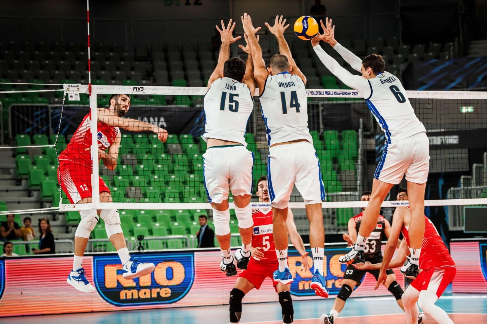 A Milli Erkek Voleybol Takımı, FIVB Dünya Şampiyonası’ndaki ikinci maçında İtalya’ya 3-0 mağlup oldu. Slovenya’ın başkenti Lübliyana’da oynanan maçı, Dışişleri Bakanı Sayın Mevlüt Çavuşoğlu, Türkiye Voleybol Federasyonu Başkanı Mehmet Akif Üstündağ, TVF Liglerden Sorumlu Asbaşkanı Ahmet Göksu, Slovenya Büyükelçisi Aylin Taşhan ve TVF Erkek Milli Takımlar Koordinatörü Semih Oktay da takip etti.