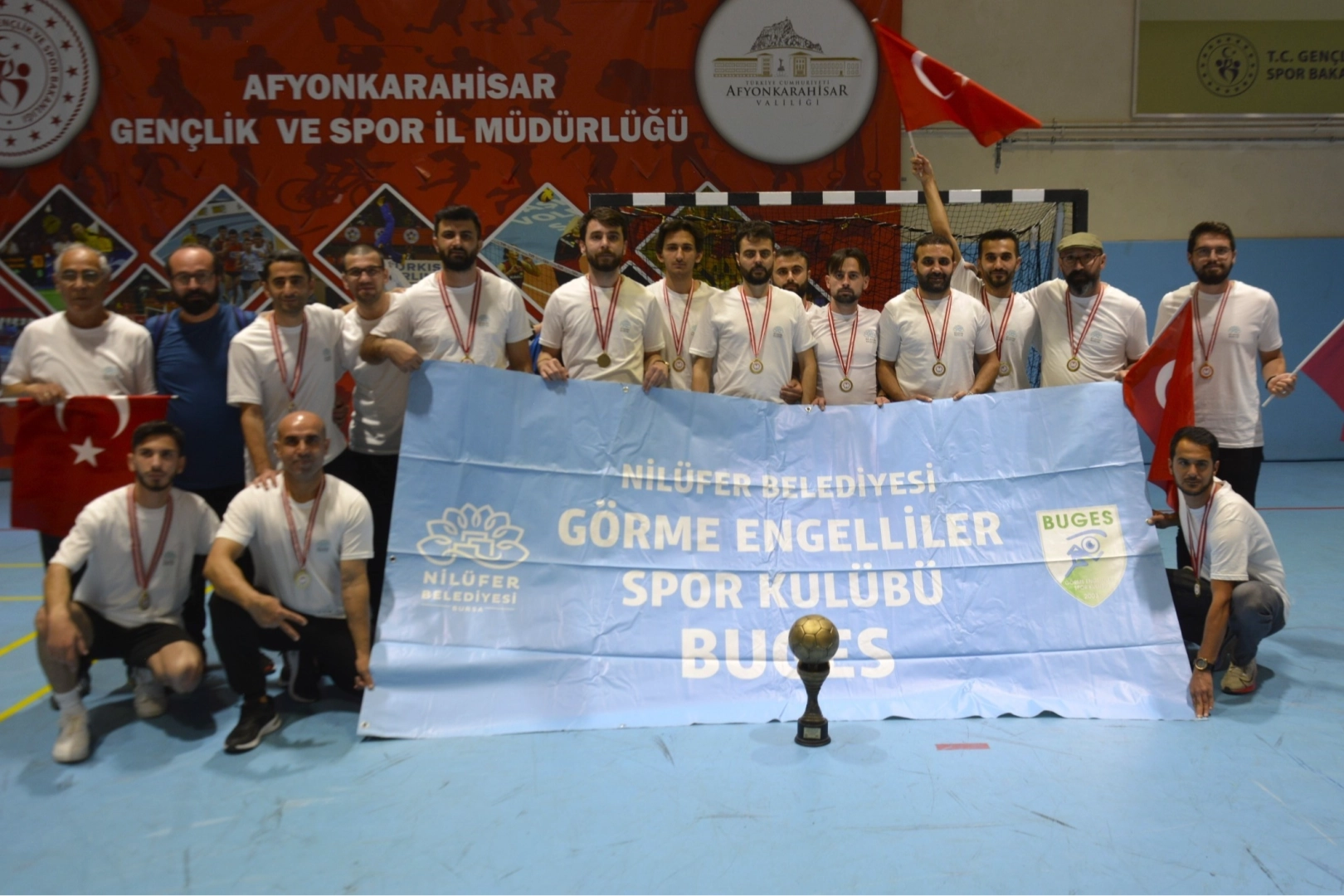 Türkiye Görme Engelliler Spor Federasyonu, Cumhuriyet’in 100. yılı kapsamında Futsal 100. Yıl Cumhuriyet Kupası düzenledi. Türkiye’nin çeşitli kentlerinden 9 takımın katıldığı turnuvada, Nilüfer Belediyesi GESK takımı da yer aldı. Grup maçlarında rakiplerini mağlup eden Nilüfer Belediyesi GESK, çeyrek final ve yarı final mücadelelerinden de galibiyetle ayrılarak finale çıktı. Finale kadar rakiplerine toplam 39 gol atan Nilüfer Belediyesi GESK, kalesinde sadece 3 gol gördü. Turnuvaya başarısıyla damga vuran Nilüfer Belediyesi GESK’in, finaldeki rakibi Yenimahalle Belediyesi GESK oldu. Etkili oyununu final maçında da sürdüren Nilüfer Belediyesi GESK rakibini 7-2 mağlup ederek Futsal 100. Yıl Cumhuriyet Kupası’nın şampiyonu oldu.