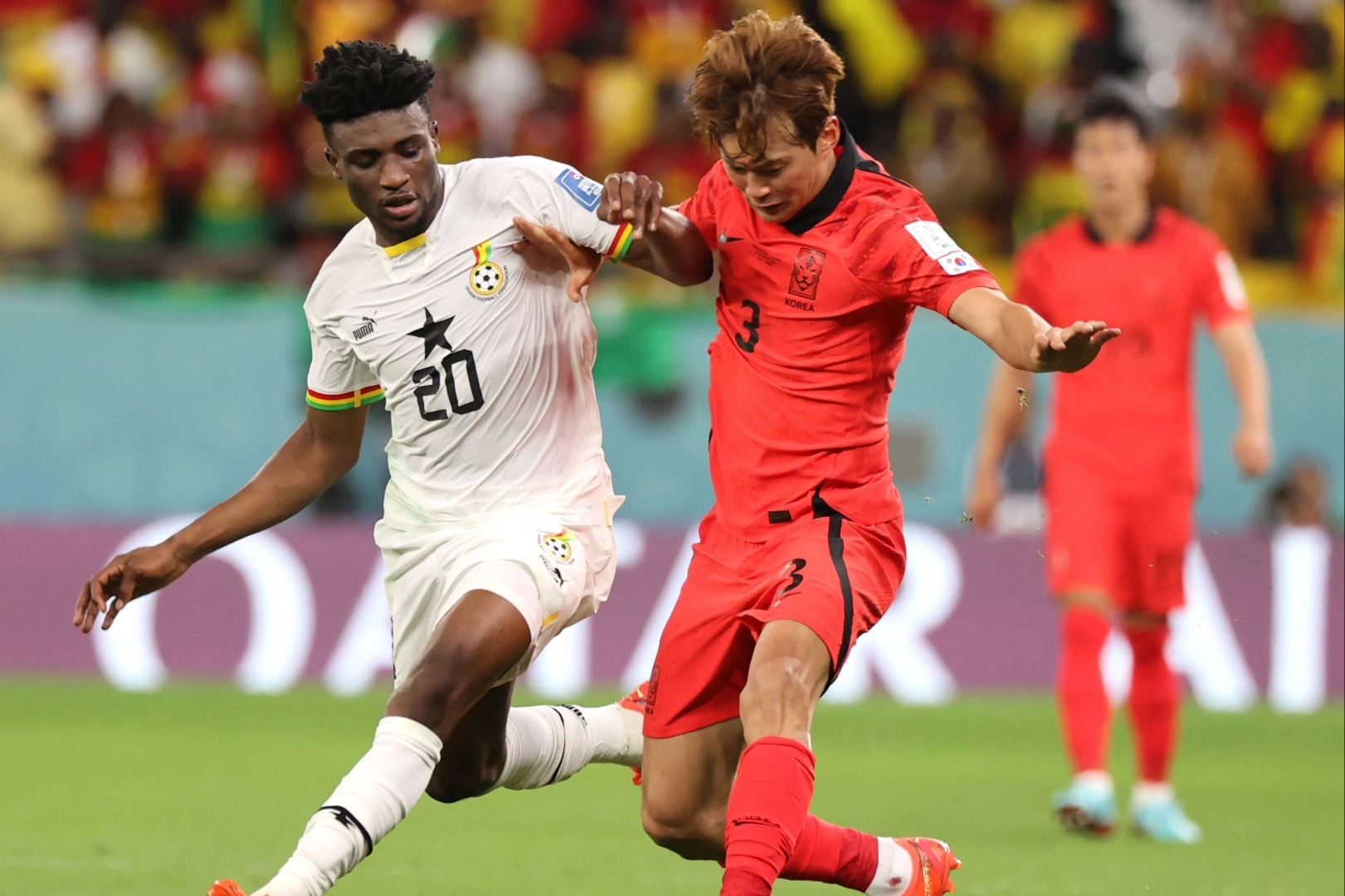 24. dakikada kullanılan duran topta Mohammed Salisu, Gana’yı 1-0 öne geçiren golü attı. Güney Kore hücumda etkisini gösteremezken, Mohammed Kudus, 34. dakikada attığı kafa golüyle farkı 2’ye çıkardı. Bu skor aynı zamanda ilk yarının da sonucu oldu. Asya temsilcisi 2. yarıya ise etkili başladı. 58 ve 61. dakikalarda Cho Kyu-Sung’un golleriyle eşitliği sağlayan Güney Kore’nin sevinci 7 dakika sürdü. Muhammed Kudus, kendisinin 2. takımının 3. golünü atarak Gana’yı yeniden öne geçirdi.