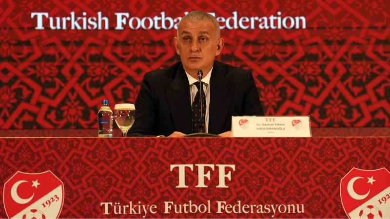 Türkiye Futbol Federasyonu (TFF) Başkanı İbrahim Ethem Hacıosmanoğlu, TFF Hasan Doğan Milli Takımlar Kamp ve Eğitim Tesisleri’nde düzenlenen basın toplantısında gündeme ilişkin açıklamalarda bulundu. Toplantıya TFF Yönetim Kurulu üyeleri ile MHK Başkanı Ferhat Gündoğdu da katıldı.