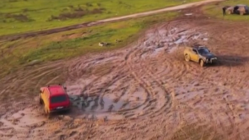 Off-road grubunun çamur içerisindeki dansı drone ile görüntülendi.