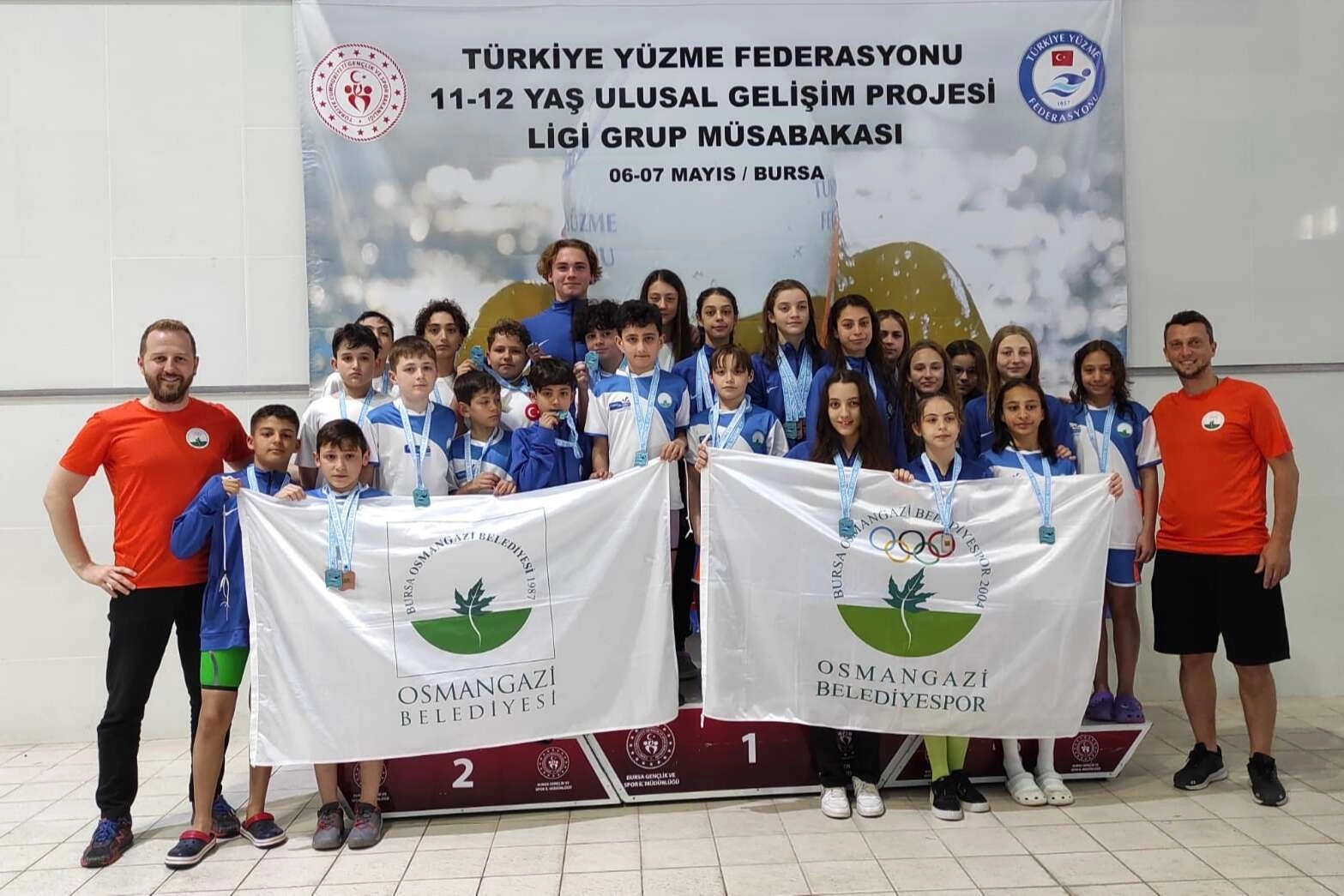 Türkiye Yüzme Federasyonu’nun 2023 yılı faaliyet programında yer alan 11-12 Yaş Ulusal Gelişim Projesi Grup Müsabakaları, kıyasıya mücadelelere sahne oldu. 43 kulüpten toplam 356 sporcunun ter döktüğü yarışlarda Osmangazi Belediyespor’un başarılı kulaçları madalyaya doydu. 50 metre sırtüstü kategorisinde rakipleri karşısında üstün performans sergileyen genç yıldızlardan İdil Derin Arslan grup birinciliği, Melek Kepçetutar grup üçüncülüğü başarısı elde ederken, Sahra Çelikkökü 50 metre ve 100 metre serbestte ikincilik, 200 metre sırtüstünde ise üçüncülük kürsüsüne oturdu. Bunun yanı sıra Sahra Çelikkökü, İdil Derin Arslan, Tanem Öğütür, Buğlem Dayı’nın yer aldığı 4x100 metre serbest kız takımı ile Sahra Çelikkökü, Emir Aybey, Tanem Öğütür, Egemen Aybey’den oluşan 4x100 serbest mix takımı üçüncülük derecesiyle göz doldurdu. Alt yapının meyvelerini almaktan dolayı büyük mutluluk duyduklarını belirten Osmangazi Belediye Başkanı Mustafa Dündar, sporcular ile antrenörlerini yürekten kutladı.