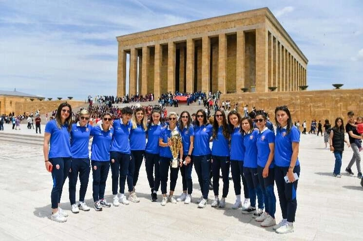 Şampiyonluk kupasıyla birlikte Ulu Önder Gazi Mustafa Kemal Atatürk’ün huzuruna çıkan sporcular, teknik heyet ve yöneticiler mozolenin önünde saygı duruşunda bulunulmasının ardından İstiklal Marşı’nı okundu.