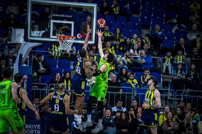 Türkiye Sigorta Basketbol Süper Ligi’nde ikinci devrenin açılış haftası olan 16. hafta mücadelesinde TOFAŞ, Fenerbahçe Beko’ya konuk oldu. Ülker Spor ve Etkinlik Salonu’nda oynanan maça Alex Perez, Hugo Besson, Tolga Geçim, Yiğitcan Saybir, Marek Blazevic beşiyle başlayan Mavi Yeşilliler, ilk basketini Marek Blazevic ile buldu. Rakip sayılarına Hugo Besson, Yiğitcan Saybir ve Marek Blazevic ile karşılık vererek 6. dakikada televizyon molasına 9-14 önde giren Bursa ekibi, mola dönüşü Maxwell Lewis’in üçlüğü sonrası Jordan Floyd ve Lynn Kidd ile sayılar bularak ilk periyodu 19-23 önde kapattı. İkinci çeyreğe de Jordan Floyd’un basketiyle başlayan TOFAŞ Basketbol Takımı, rakip sayılarına engel olamayınca 11.30’da ev sahibi takım 26-25 öne geçti. Fenerbahçe Beko 12.30’da farkı 5’e (30-25) çıkartırken, Bursa ekibi rakibin 9-0’lık serisien Tolga Geçim’in üçlüğüyle son verdi. Alex Perez ve Yiğitcan Saybir’in elinden bulduğu sayılarla 16. dakikada farkı 1’e (36-35) indiren Mavi Yeşilliler, kaptan Tolga’nın üçlüğüyle skoru 38-38 eşitlese de soyunma odasına 45-38 geride girdi.