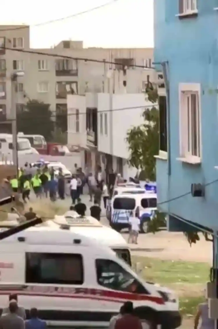 Evlerinin önünde kavgaya tutuşan taraflar önce yumruk yumruğa, sonra silahlarla çatıştı. 4 kişinin yaralandığı kavgayı polis havaya ateş açarak ayırdı.
