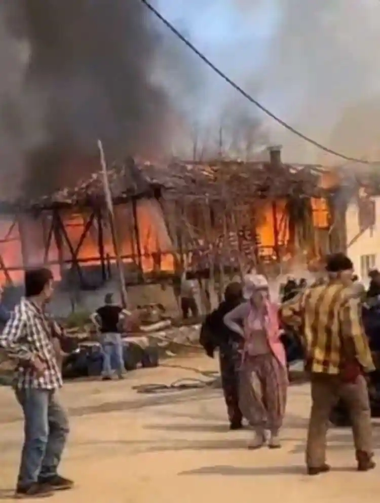 Yangın sonucu 3 ev ve 1 ahır kullanılamaz hale geldi.