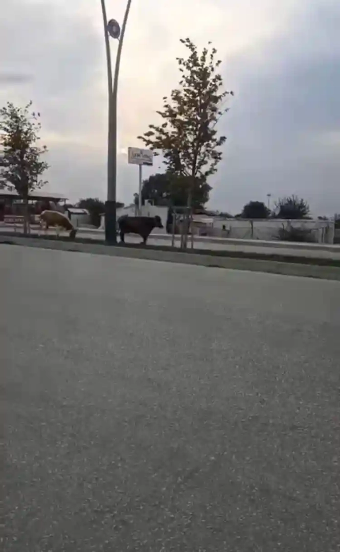 Bursa'da başıboş 2 inek, orta refüjde otladı. O anlar kameraya yansıdı. Sürücüler trafiğin tehlikeye atılmaması için hayvanların sahiplerine çağrıda bulundu.