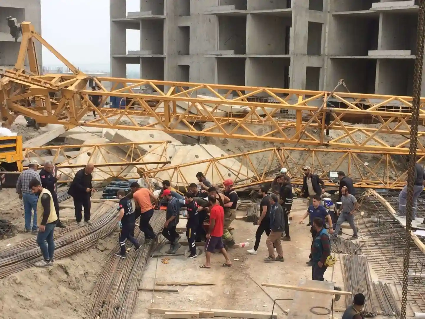 İnşaat şantiyesinde vinç devrildi: 1 kişi yaralandı