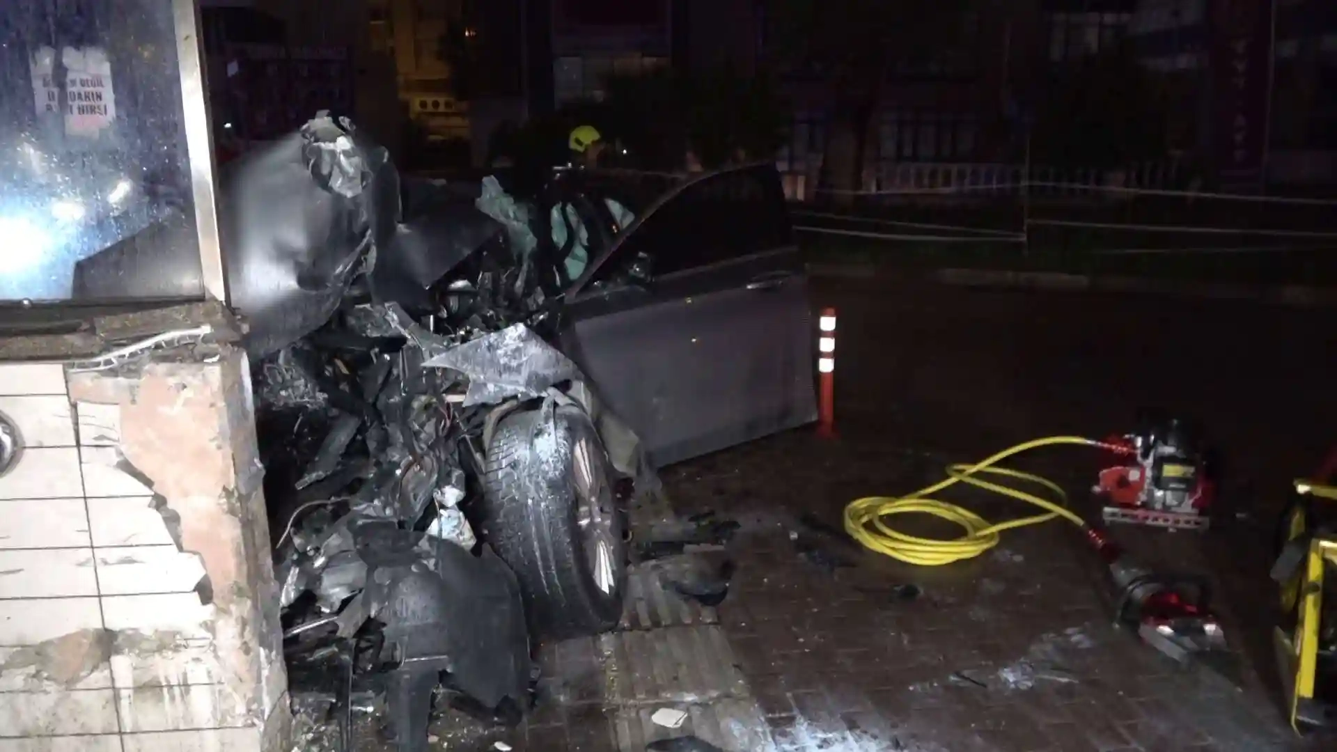 Bursa’da yağışlı havanın etkisiyle sürücüsünün kontrolünden çıkan otomobil metro istasyonunun alt geçidine çarptı. Çarpmanın etkisiyle hurdaya dönen otomobildeki 3 kişi hayatını kaybetti, 1 kişi ise ağır yaralandı.