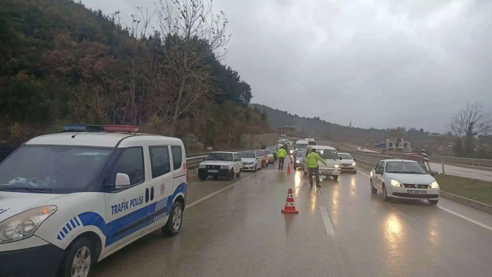 Edinilen bilgiye göre, Bursa - Orhaneli yolu üzerinde yağış sebebiyle trafik kazası meydana geldi. 8 aracın karıştığı maddi hasarlı kazada trafikte aksamalar meydana geldi. Polis tarafından tutanakların tutulmasının ardından trafik normal akışında devam etti.