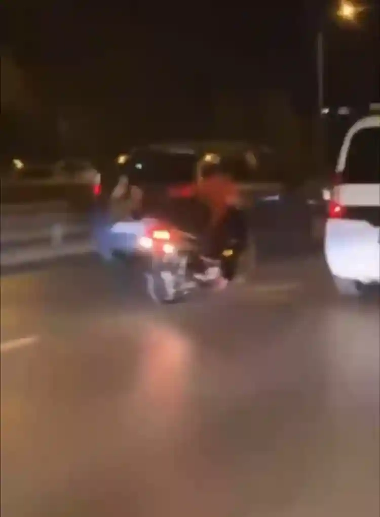 Bir süre böyle giden motosiklet sürücüsü, yürekleri ağza getirdi.