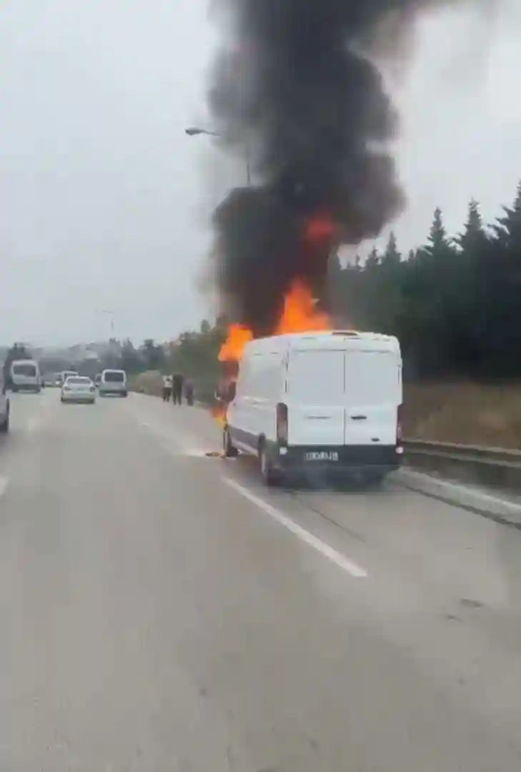 Bursa'da seyir halindeki minibüs alev alev yandı