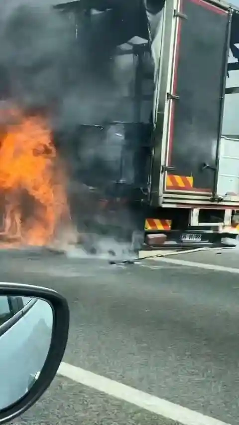 Olay, İzmir-İstanbul otobanı üzerinde meydana geldi. İzmir’den İstanbul istikametine doğru seyir halinde olan tır Bursa Şehir Hastanesi’ni geçtikten sonra tırdan dumanlar yükselmeye başladı. Diğer sürücülerin ikazıyla tırı yol kenarına çeken şoför kendi imkanlarıyla alevlere müdahale etmek istedi. Ancak alev alan boyaları söndüremeyince olay yerine itfaiye ekipleri sevk edildi. Tırın alev alev yanması ise yoldan geçen vatandaşların cep telefonu kamerasına yansıdı.