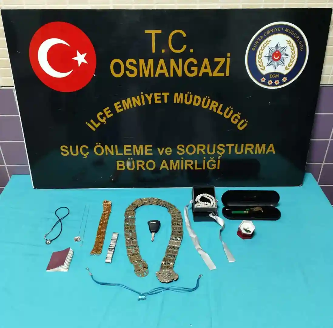 Edinilen bilgiye göre, geçtiğimiz hafta salı sabahı saat 07.00 sıralarında merkez Osmangazi ilçesi İnkaya Mahallesi'nde bulunan bir villaya giren şahıs, giysi dolabındaki dijital çelik kasanın içindeki 5 milyon liralık mücevheratı çaldı. Olayın ihbar edilmesiyle birlikte harekete geçen Osmangazi Suç Önleme ve Soruşturma Büro Amirliği ekipleri hızlı bir şekilde inceleme başlatarak olayı çözdü.