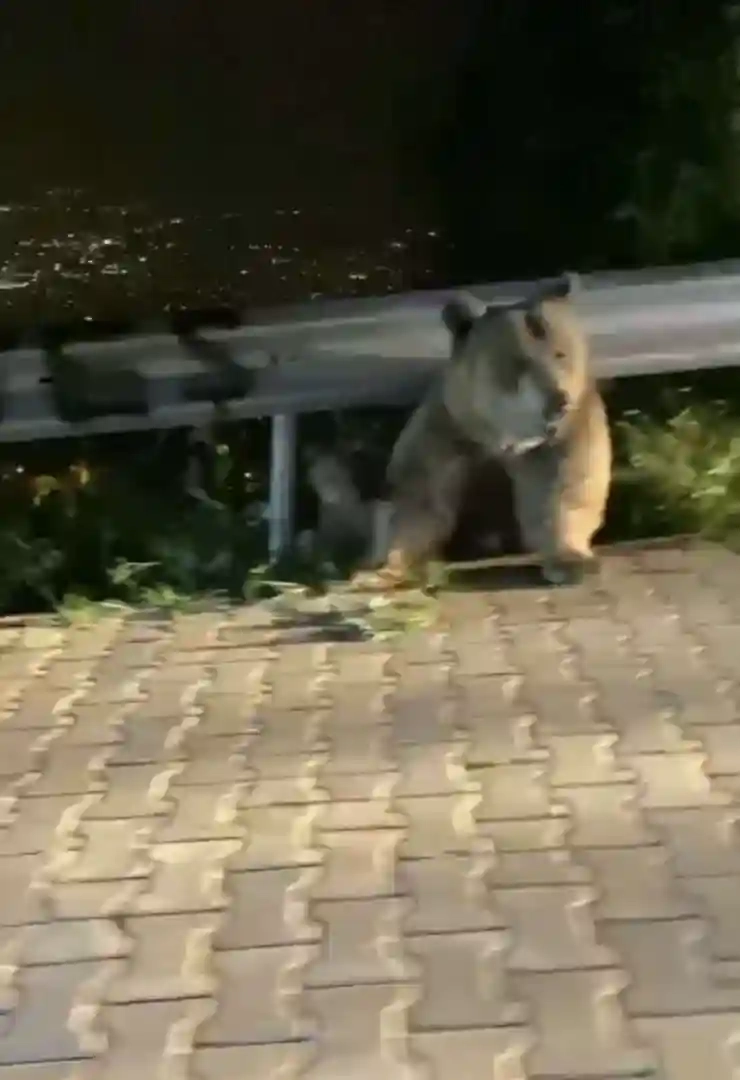Uludağ yolundaki bir ayı, yavrularını korumak için bariyerlerin arkasına geçerken, sokak arasında gezen sansar ve tilki çevredekilerin şaşkın bakışları arasında ortadan kayboldu.