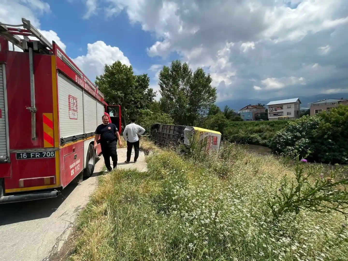 Kaza sebebiyle olay yerine çok sayıda ekip sevk edildi Alınan bilgiye göre, merkez Osmangazi İlçesi Panayır Mahalllesi Dereyolu Caddesi'nde öğle saatlerinde meydana gelen kazada Tuğrul A. idaresindeki 16 TAT 70 plakalı belediye otobüsü ağaca çarpıp yan yattı. Yolcu dolu otobüs dereye uçmaktan son anda kurtuldu. Kazada yaralanan 10 kişi olay yerine gelen ambulanslarla Şehir Hastanesi ve Yüksek İhtisas Eğitim Araştırma Hastanesi'ne kaldırıldı. Yaralıların hayati tehlikesinin bulunmadığı öğrenildi. Olay yerine AFAD, İtfaiye ve Umke ekipleri sevk edilirken polis ekipleri olayla ilgili soruşturma başlattı.
