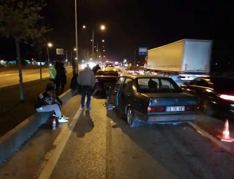 Oğuzhan B.'nin otomobiline ise arkasından gelen Altan G. yönetimindeki 10 TE 587 plakalı otomobil çarptı. Kaza sonucu sürücüler yaralanmazken, 10 TE 587 plakalı otomobildeki yolcular Nejla G. (45) ve Cihan G. (21) ile 35 GD 5631 plakalı otomobildeki yolcular Saniye Ç. (72) ve Nurhan B. (24) yaralandı. Yaralılara ilk müdahaleyi haber verilmesi üzerine kaza yerine gelen 112 Acil Servis Ambulansında görevli sağlık ekipleri yaptı. Yaralılar ambulanslarla İnegöl Devlet Hastanesi Acil Servisine götürülerek tedavi altına alındı. Kaza nedeniyle kapanan yol, araçların yoldan kaldırılmasının ardından tekrar trafiğe açıldı.