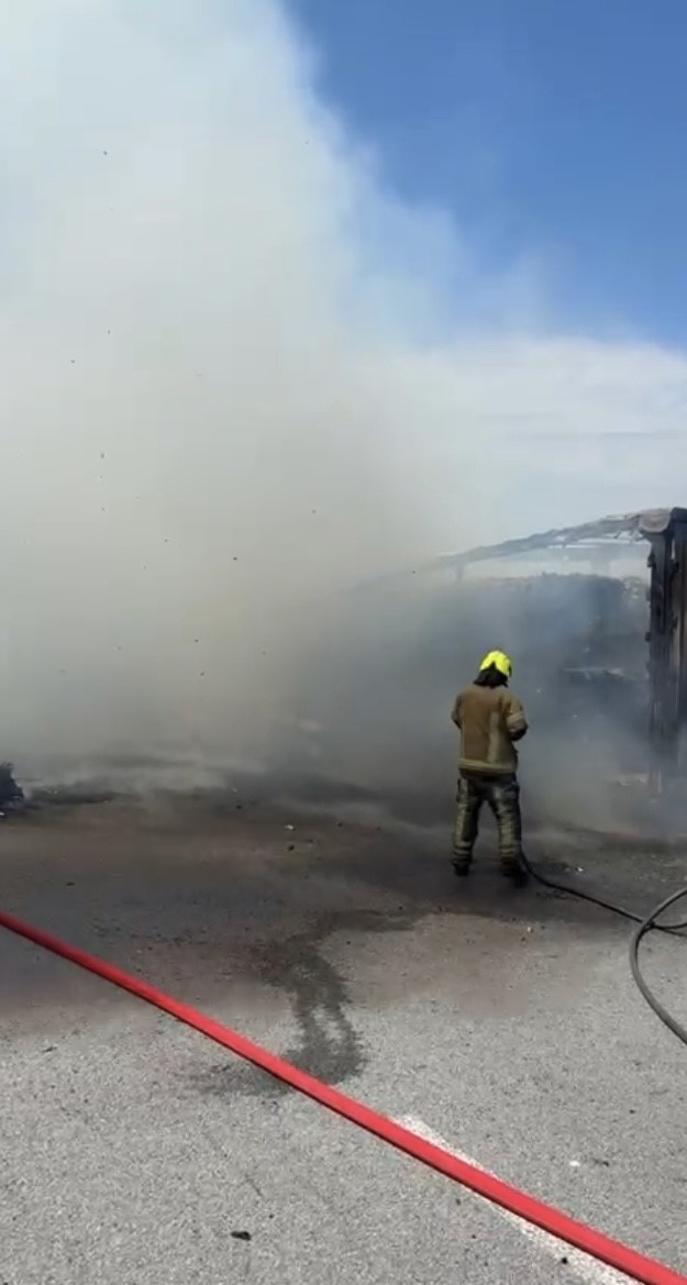 İhbar üzerine bölgeye çok sayıda itfaiye ekibi sevk edildi. Olay yerine ulaşan ekipler, yoğun duman ve alevlere rağmen yangına müdahale ederek kontrol altına aldı. Uzun süren çalışmaların ardından yangın tamamen söndürülürken, tırın büyük bölümü kullanılamaz hale geldi.