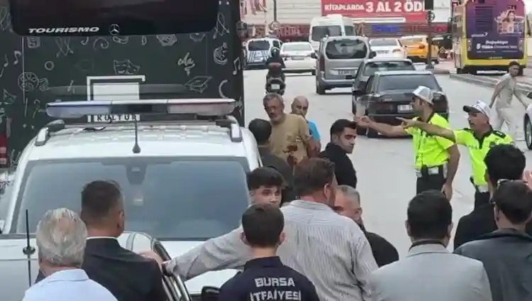 Bursa'da Atatürk Caddesi üzerinde bir şahıs elindeki bıçakla defalarca kendini bıçakladı. Polis ekipleri yol ortasındaki şahsı sakinleştirmeye çalışırken, trafiği de kontrollü şekilde yönlendirdi.