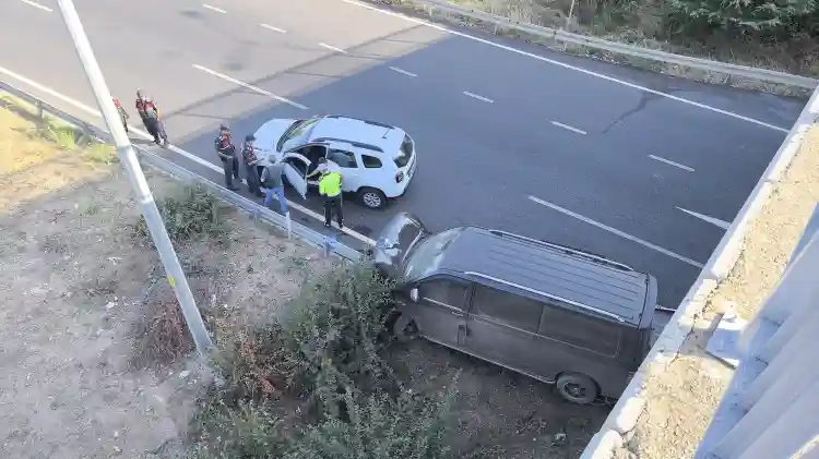 Cenazeden dönen ailenin minibüsü bariyerlere saplandı