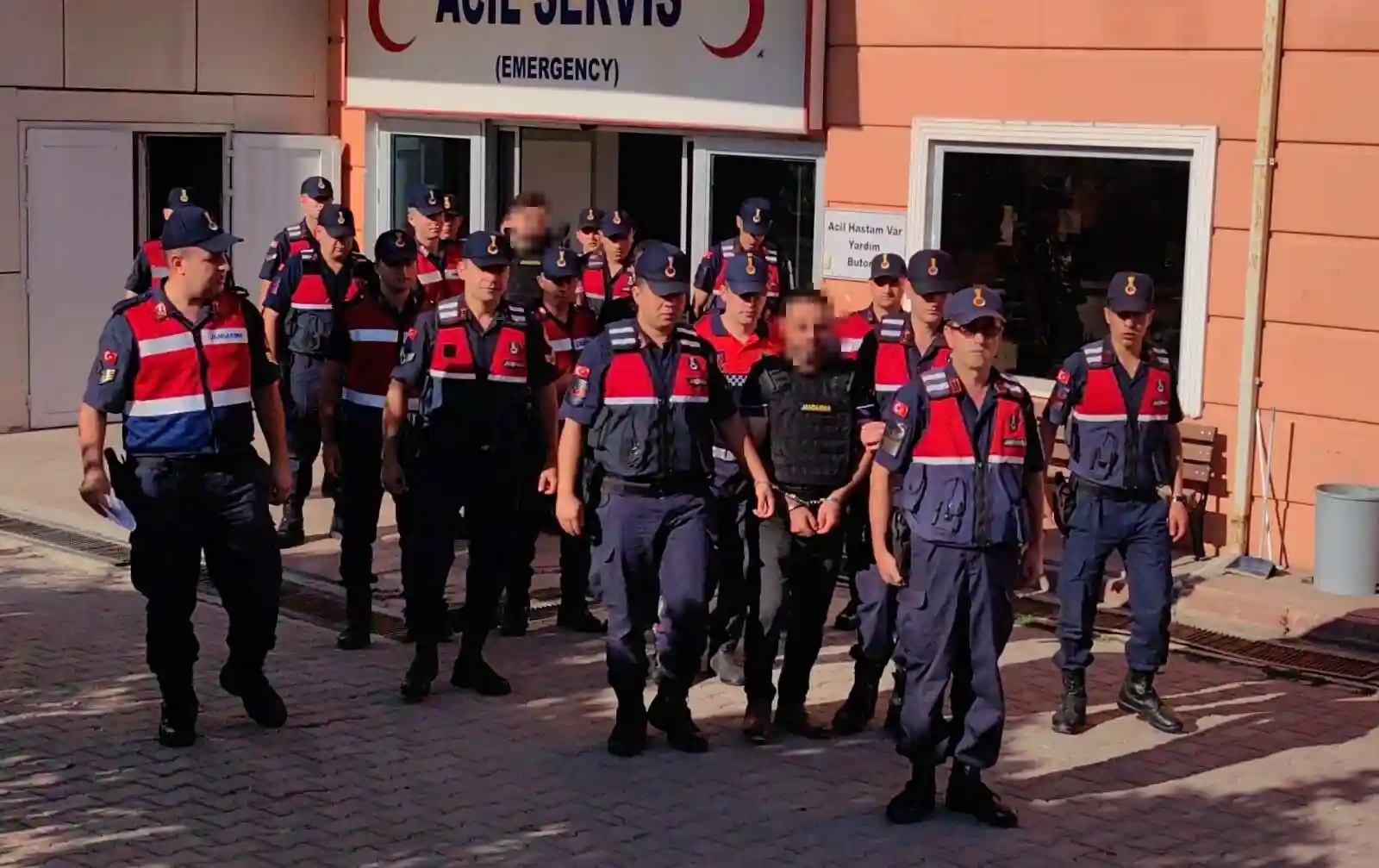 Jandarma komutanlığında sorgulamaları tamamlanan 4 şüpheli de çelik yelek giydirilerek Adliyeye sevk edildiler.