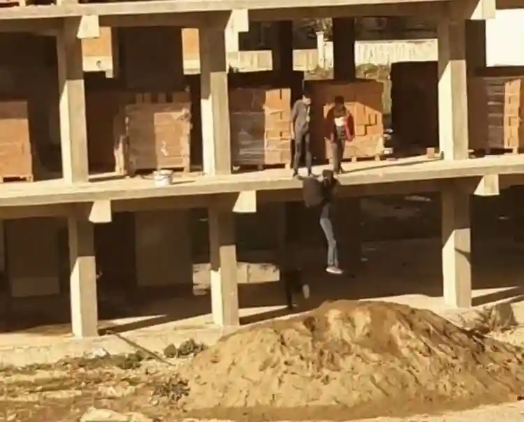 Olay, Yeni Mahalle'de inşaat halindeki bir binada meydana geldi. 5 çocuk, güvenlik önlemi alınmayan inşaata girip oyun oynamaya başladılar. Oyun sırasında 2. kattan kendilerini boşluğa bırakan çocuklar, kum yığını üzerine düştüler. Çocukların tehlikeli oyunu amatör kameraya saniye saniye yansıdı.