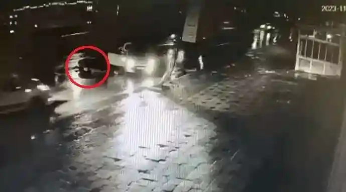 Bursa'da yağmurlu havada kayıp direğe çarpan otomobil sürücüsü, kapısından fırlayıp yola yuvarlandı. O anlar güvenlik kamerasına yansırken; yerde emekleyerek kenara kaçmayı başaran yaralı sürücü başka bir otomobilin altında kalmaktan şans eseri kurtuldu.