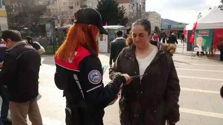Bursa İl Emniyet Müdürlüğü Asayiş Şube Müdürlüğü'ne bağlı Dolandırıcılık Büro Amirliği ekipler ile Yunus timleri, şehrin en yoğun insan kalabalığının bulunduğu bölgeler ile noter önlerinde dolandırıcılık olaylarına karşı broşür dağıtarak halkı bilgilendirdi. Şehir merkezinde ekipler yaklaşık 2 bin 579 broşür dağıttı. Vatandaşların bu durum karşısında memnuniyet duyduklarını ifade etti.