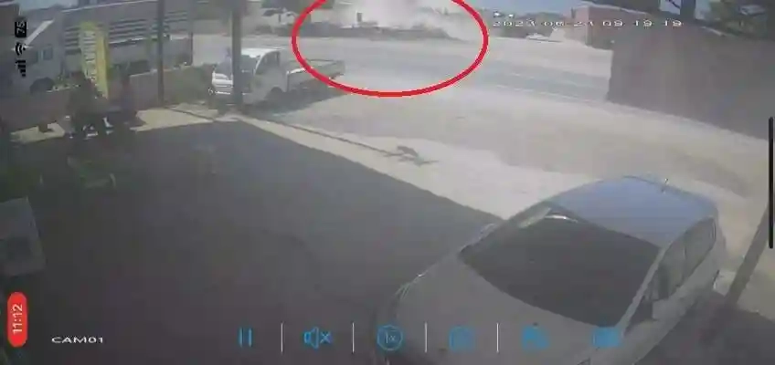 Bursa’nın İznik ilçesinde park halindeki tırın freni boşaldı. Tomruk yüklü tır şans eseri lastiğinin patlamasıyla durdu. O anlar güvenlik kamerasına yansıdı.