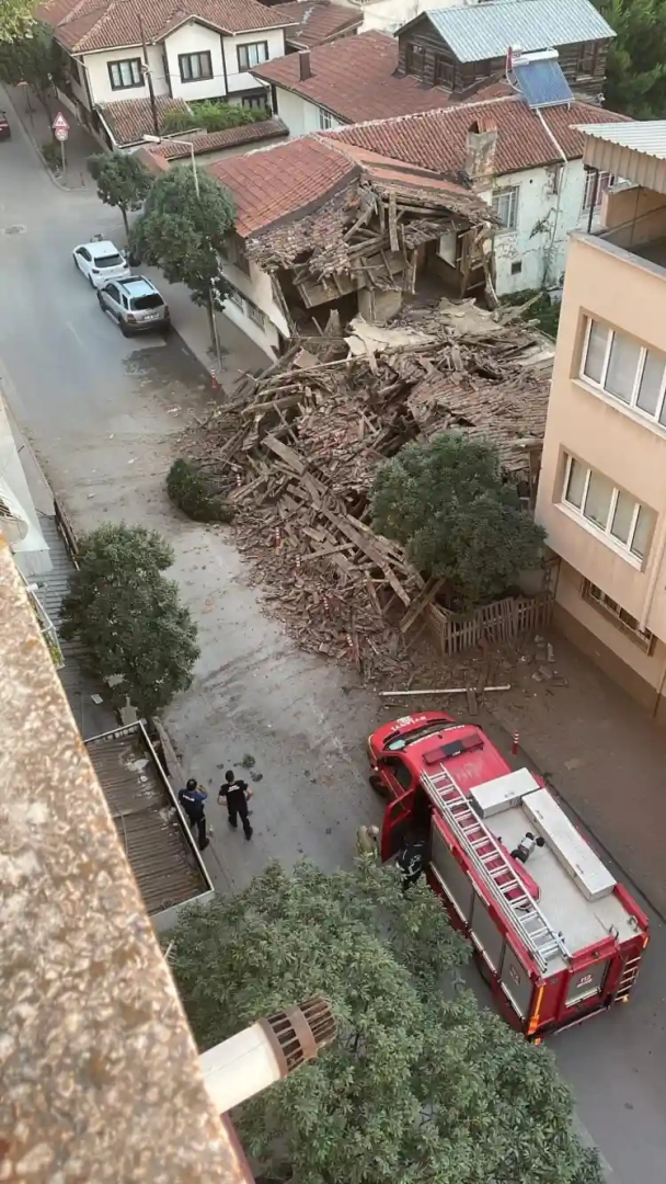 Bursa'nın İnegöl ilçesinde metruk bina gürültüyle çöktü. Sabahın erken saatlerinde çökmesi muhtemel faciayı önledi.