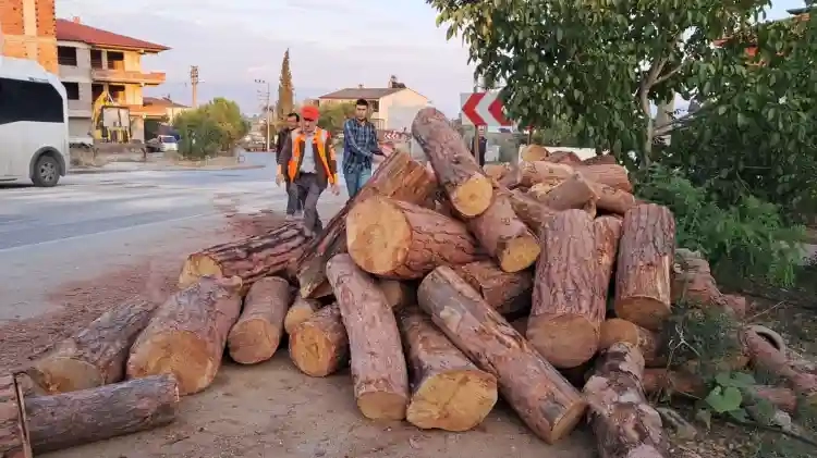 İznik'te tonlarca kütük devrildi, öğretmen kıl payı kurtuldu