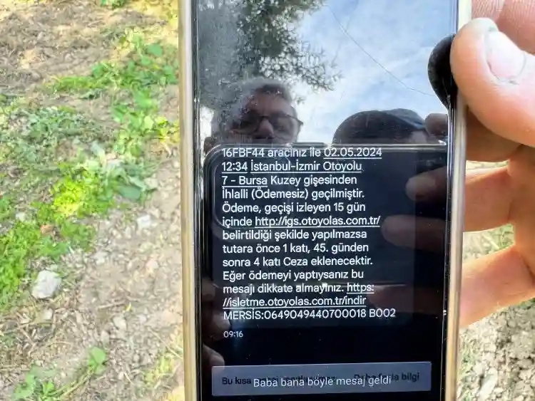 Hiç gitmediği İstanbul İzmir otobanından ihlali geçiş yaptığı uyarısı mesajı alan OKKALI, haline gülsemi ağlaşanı bilemedi. Bursa’nın İznik ilçesinde çiftçilikle uğraşan 43 yaşındaki Yahya Okkalı geçtiğini günlerde telefonuna gelen ’16 FBF 44 aracınız ile 02.05.2024 İstanbul İzmir otoyolu ihlali (ödemesiz) geçilmiştir. 15 gün içinde ödeme yapılmazsa bir katı, 45 gün sonra ise 4 katı ceza eklenecektir.’ mesajla şoku yaşadı.