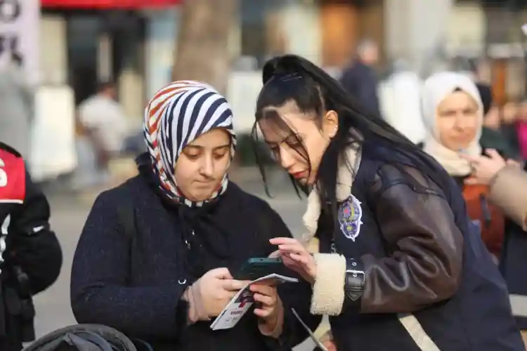 Bursa'da kadına yönelik şiddetin önüne geçilmesi amacıyla il ve ilçelerde yaklaşık bin adet stant kuruldu. Stantlarda eğitim veren polis ekipleri cadde cadde sokak sokak dolaşarak vatandaşların telefonuna KADES uygulaması indirip suç oranlarının azalmasını hedefliyor.