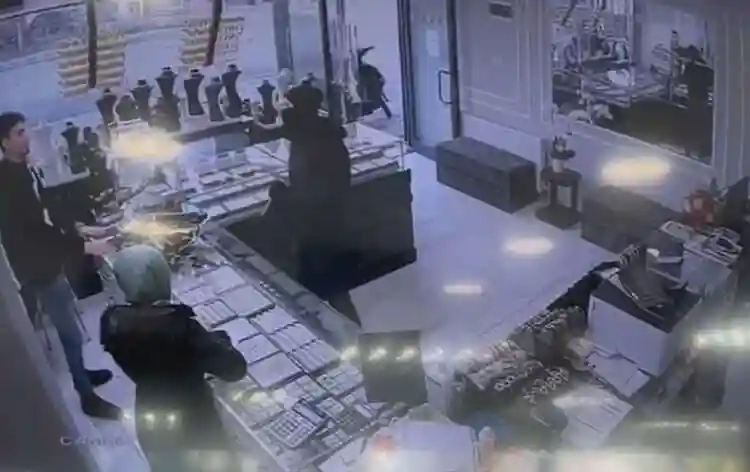 Olay, merkez Yıldırım ilçesi Millet Mahallesi'nde meydana geldi. 2. Vatan Caddesi üzerinde bulunan kuyumcunun önünde motosikleti ile duran Emre V., yüzünde kar maskesi ve elinde silahla gündüz vakti içeriye daldı. Kuyumcuda daha önceden gözüne kestirdiği Adana burması bileziklerin olduğu tarafa yönelen Emre V., 9 adet bileziği alarak tekrar motosikletine binip, hızla olay yerinden kaçtı. O anlar güvenlik kamerasına yansırken, polis Emre V.'nin yakalanması için güvenlik kameralarını inceledi.