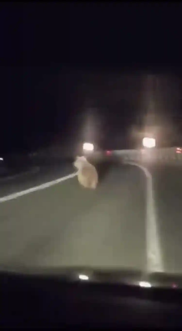 Bursa’da Uludağ’ın eteklerindeki Orhaneli karayoluna inip yolunu kaybeden ayı az kalsın trafik kazası kurbanı olacaktı. Aracıyla yoldan geçen bir sürücü onu takip edip görüntüledi.