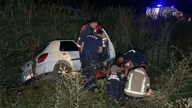 Yoldan çıkan araç bariyerleri aşarak şarampole yuvarlandı. Kaza sonucu araçta sıkışan sürücü yaralandı.