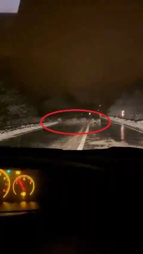 Bursa’nın dağ ilçelerinden Keles’te yoğun kar yağışı sonrası domuz sürüsü yiyecek aramak için karayoluna indi.