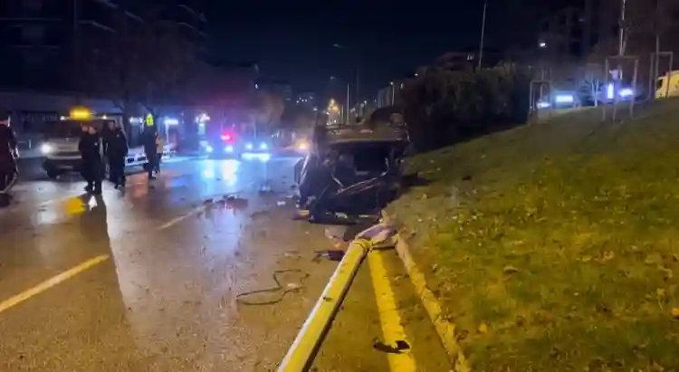 Kaza, merkez Nilüfer ilçesi Fatih Sultan Mehmet Bulvarı üzerinde meydana geldi. Edinilen bilgiye göre, S.C. idaresindeki 06 DA 2819 plakalı otomobil, kaygan zeminde sürücüsünün hakimiyetinden çıkarak yol kenarındaki refüje çarptı. Refüje çarpan otomobil takla atarak aydınlatma direğini devirdi. Çevredeki vatandaşların ihbarı üzerine olay yerine sağlık, itfaiye ve polis ekibi sevk edildi. Kazayı sürücü S.C. burnu bile kanamadan atlatırken, yolcu konumunda bulunan eşi H.C. yaralandı. Yaralı, olay yerinde yapılan ilk müdahalenin ardından hastaneye kaldırıldı.
