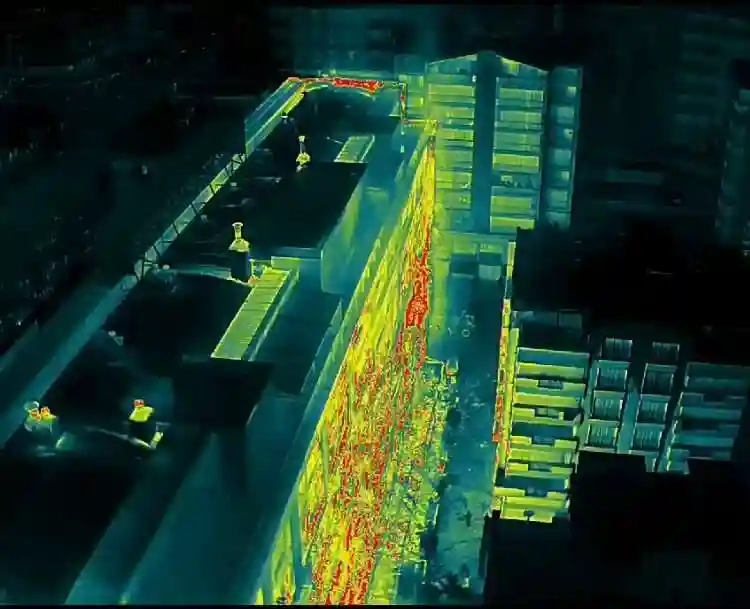 Binanın çevresinde dolaşan termal dronların kriz masasına anlık aktardığı görüntülerden binanın tamamen söndürülüp söndürülmediği kontrol edildi.