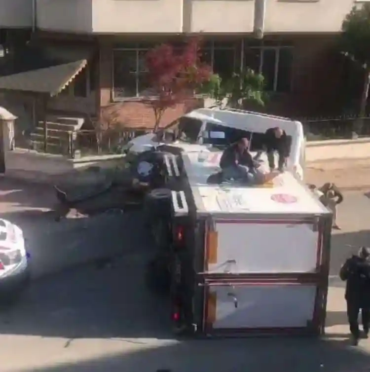 Kaza, saat 08.00 sıralarında Kemalpaşa Mahallesi Paşaören ile Hicran Sokak'ın kesiştiği kontrolsüz kavşakta meydana geldi. Paşaören Sokak'ta seyreden sürücü Yusuf Ç. (30) yönetimindeki 34 FJ 8723 plakalı kamyonet, Hicran Sokak'tan çıkan sürücü İsmail D. (21) idaresindeki 19 ADD 565 plakalı minibüse yandan çarptı. Çarpmanın etkisiyle kamyon devrilirken, minibüs askıda kaldı. Kaza sonucu sürücüler ile minibüsteki yolcu Faruk Ç. (32) yaralandı.
