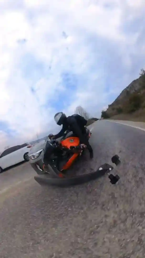 Kaza anı ise motosikletin aksiyon kamerasına saniye saniye yansıdı.