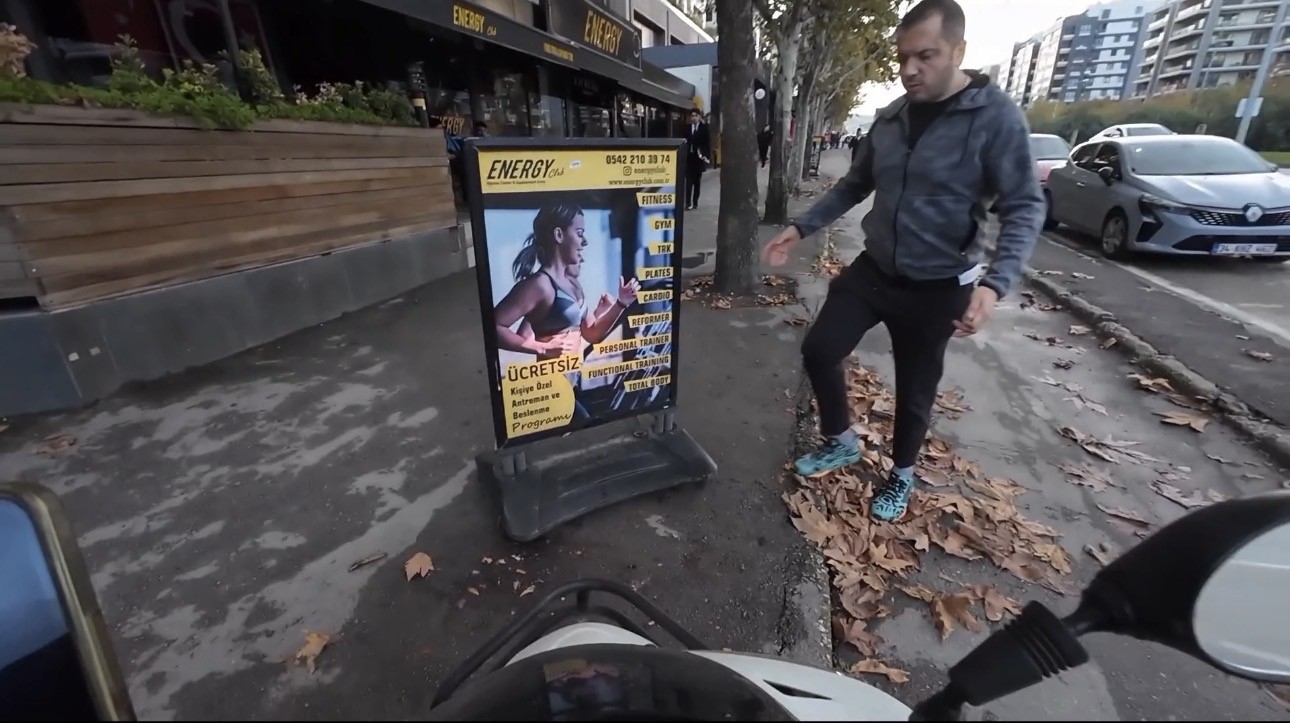 Kaza anını gören bir vatandaş ise sürücüye "İyice sıyırdınız, dikkat et. Yağışlı yerler, kendi canını hiçe sayıyorsun" diyerek hem uyarıda bulundu hem de çevredekileri güldürdü.